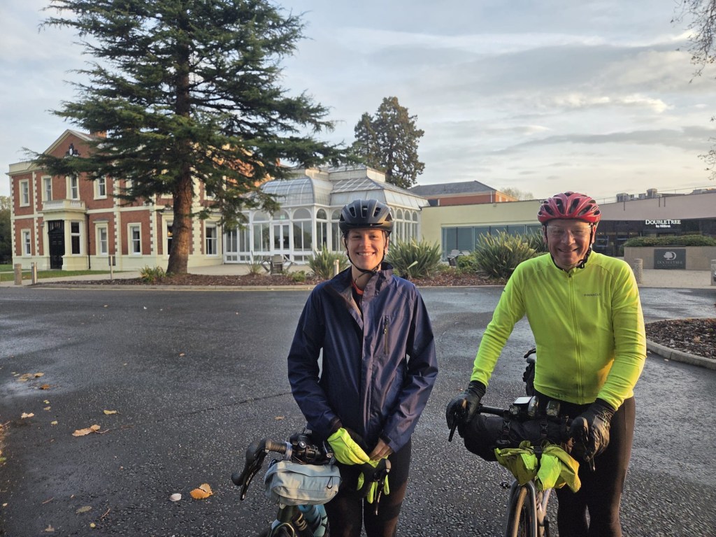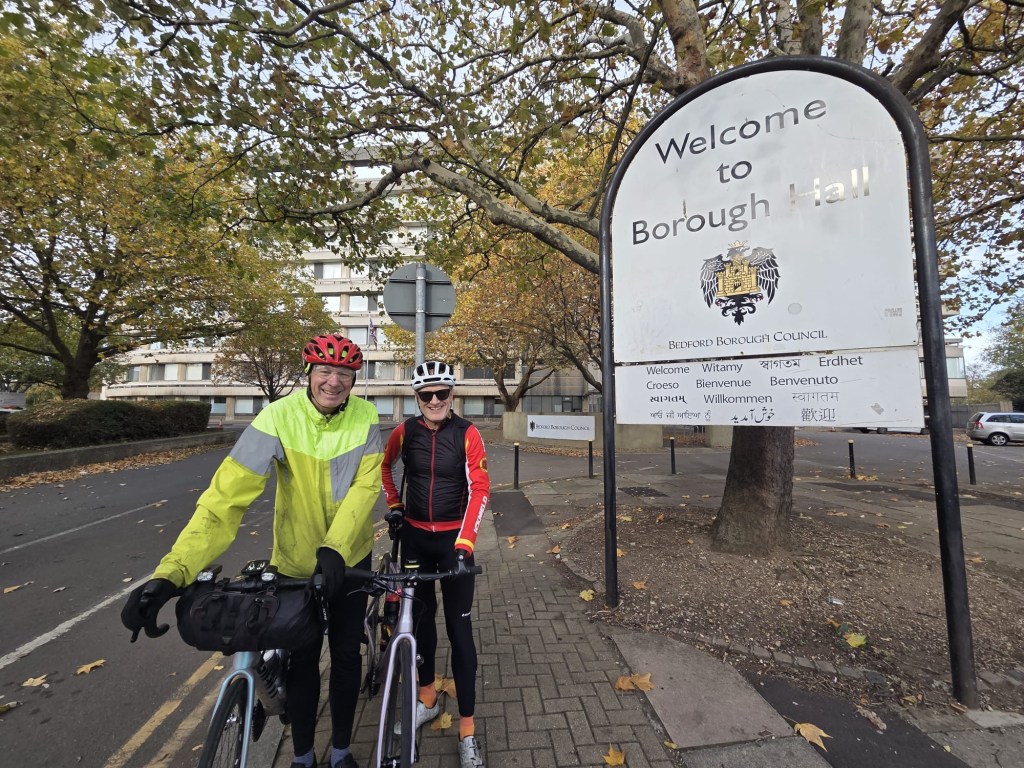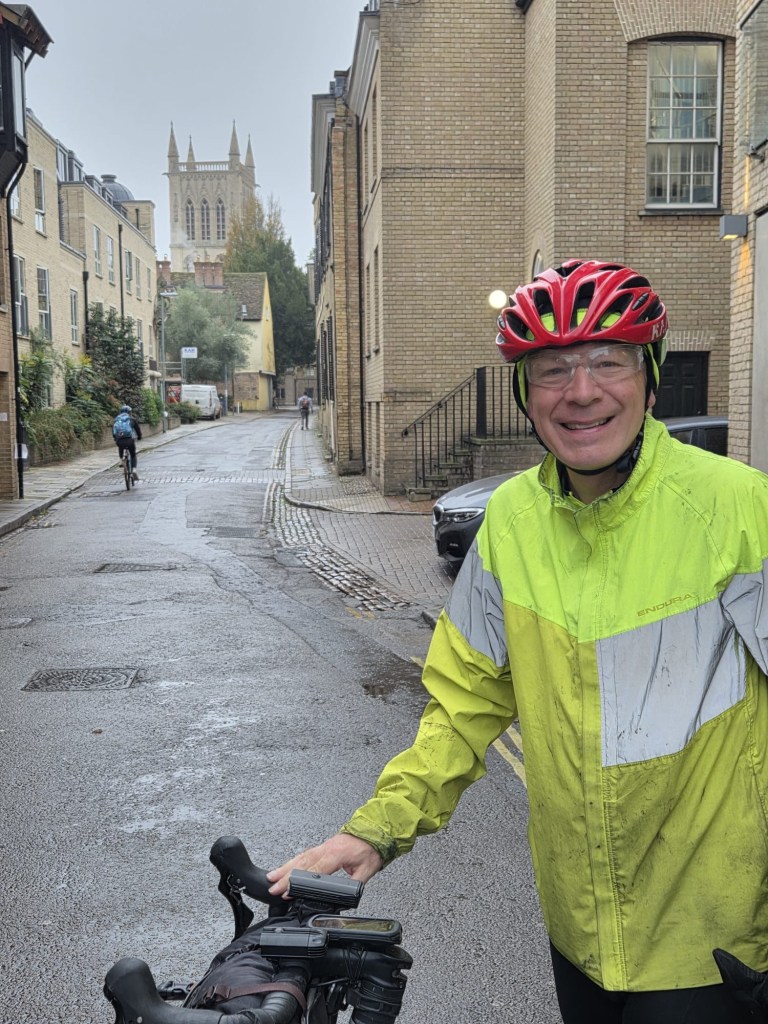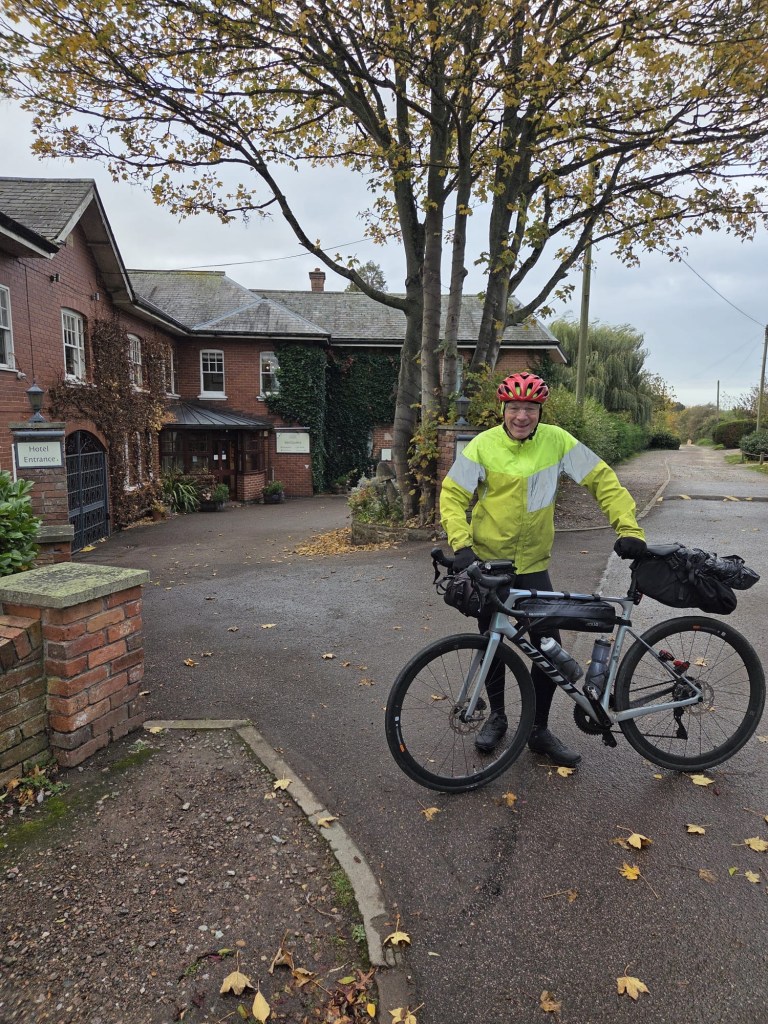 The day started in Ipswich, the weather was variable with a couple of heavy rain storms. The route out of both Ipswich and Colchester was off road and quite challenging due to leaves and rain. Otherwise it was very straightforward and beautiful scenery across Suffolk and Essex. We ended in Harlow at the Green Man Pub with rooms. Tomorrow we head for Hertford then stop en route to Uxbridge at Denham as we bring the total to 37 out of 42. Tomorrow and Sunday Rebecca and Brad will join which is great