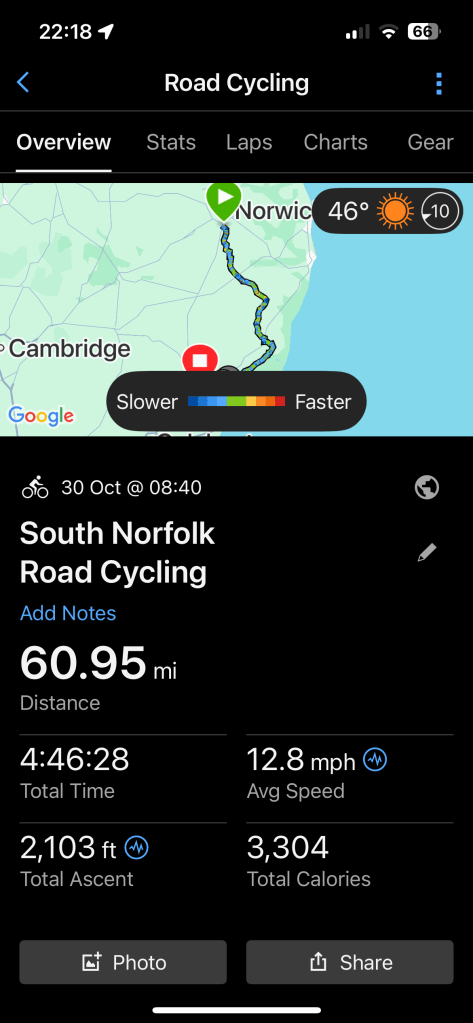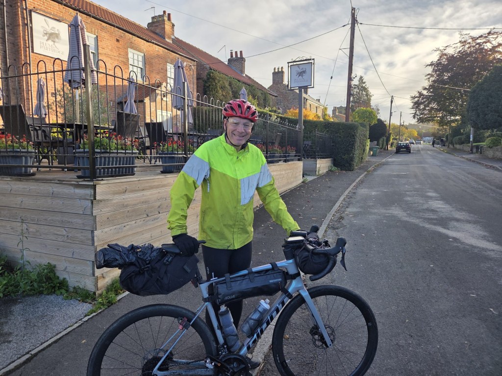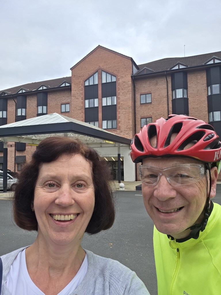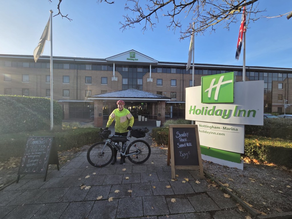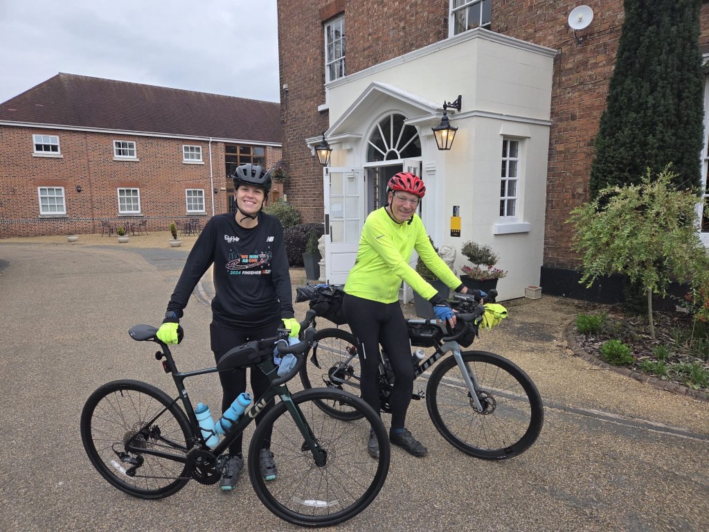 The day started in Ipswich, the weather was variable with a couple of heavy rain storms. The route out of both Ipswich and Colchester was off road and quite challenging due to leaves and rain. Otherwise it was very straightforward and beautiful scenery across Suffolk and Essex. We ended in Harlow at the Green Man Pub with rooms. Tomorrow we head for Hertford then stop en route to Uxbridge at Denham as we bring the total to 37 out of 42. Tomorrow and Sunday Rebecca and Brad will join which is great