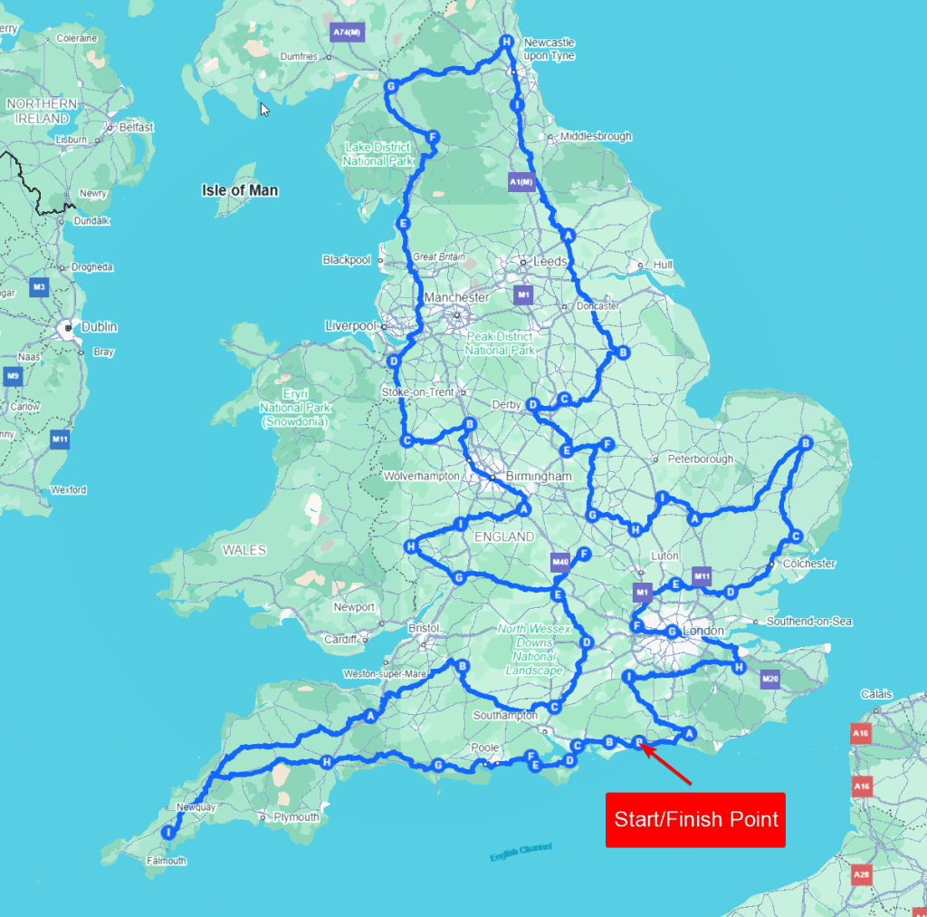 Here’s the full ordered list of each town I’ll be aiming to go to: